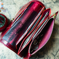 Два отдела под купюры и разнообразные полезные бумажечки. Большой отдел под мелочь и четыре вместительных отдела под карточки и визитки.