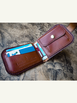 Мужской кошелек. На борту монетница ,отдел под купюры, три отдела под карты,и два потайных отдела.