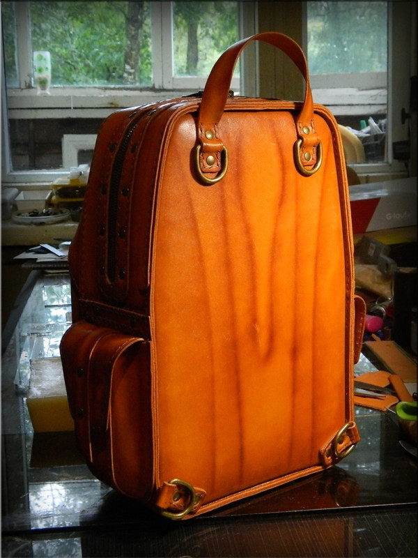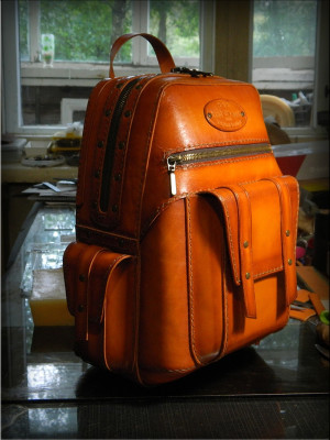 Рыжий рюкзак. Кожа 2 мм, шаг пробойника 6 мм.
