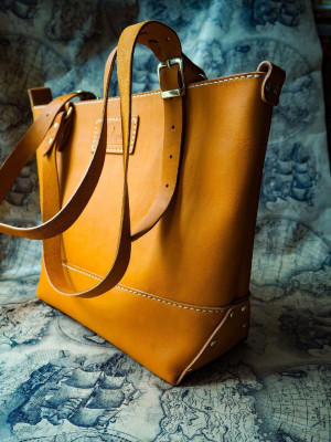 Доброго всем дня. Изобразил такой вот женский шоппер под формат А4. Размер 39х30х13см.Натуральная кожа. Как по мне весьма практичны. Выкройкой делюсь.