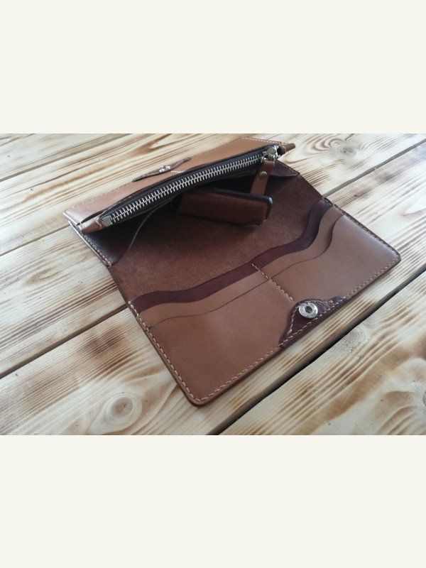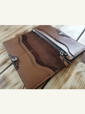 Компактный женский кошелёк "Jane" (лонгер) 85х186 мм. 7 отделений для карт. Отделение на молнии для мелочи и два больших отделения под купюры. Кожа Краст юфть 1.4