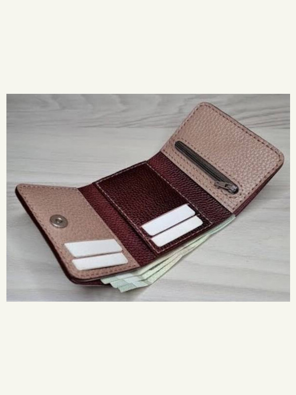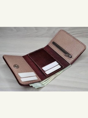 Выкройка трифолд из кожи от Caspia Leather, в который имеются отделения для пластиковых карт, купюр, и мелочь.