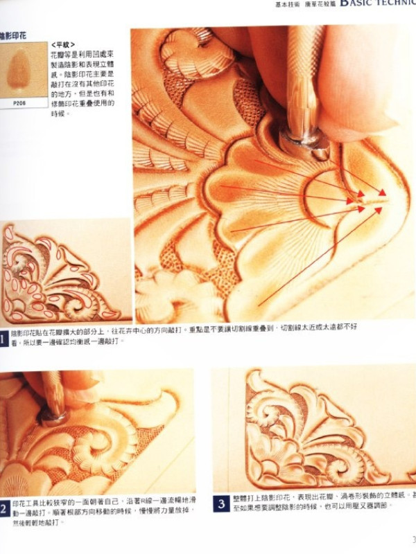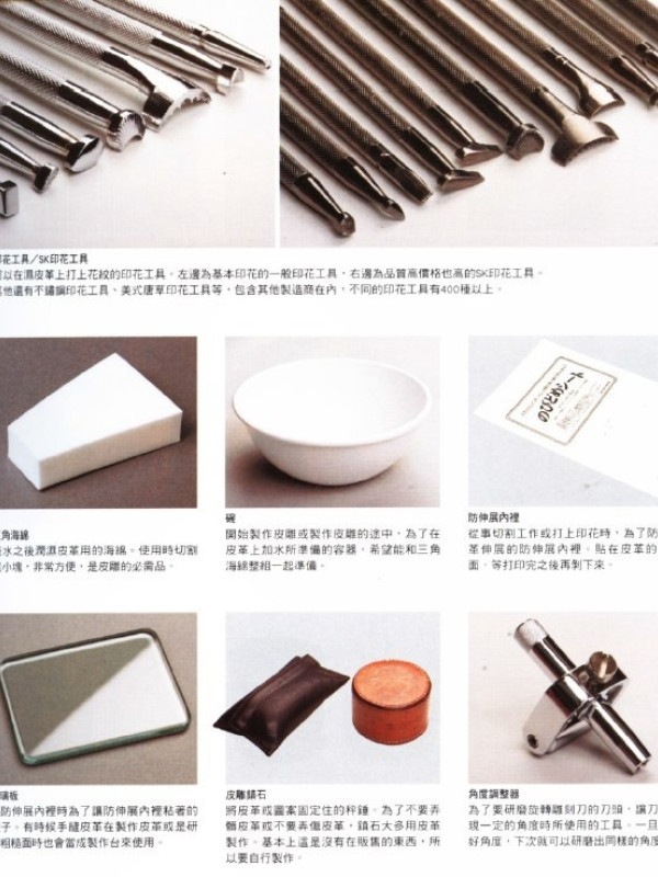 Интересная книжка для кожевенных дел мастеров. Leather Carving. Тиснение на коже растительного дубления. Показаны все инструменты которые используются при художественном тиснении на коже, показано как заточить поворотный нож, с чего начать новичкам. Приведены мастер-классы по созданию портмоне, ремня, тиснения отдельных элементов. Книга на японском языке, много фото, 157 стр.