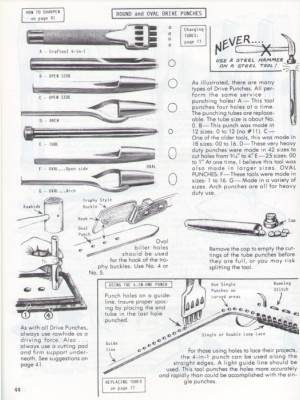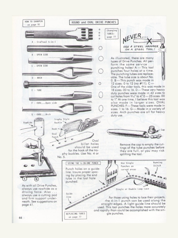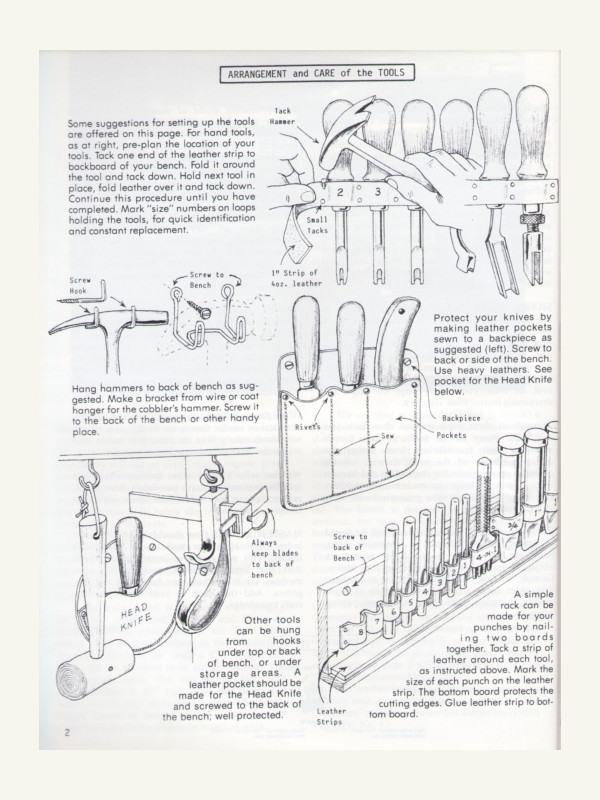 Содержит советы по использованию и заточке ножей, пуансонов, пробойников, кромок и многих других инструментов для работы с кожей.