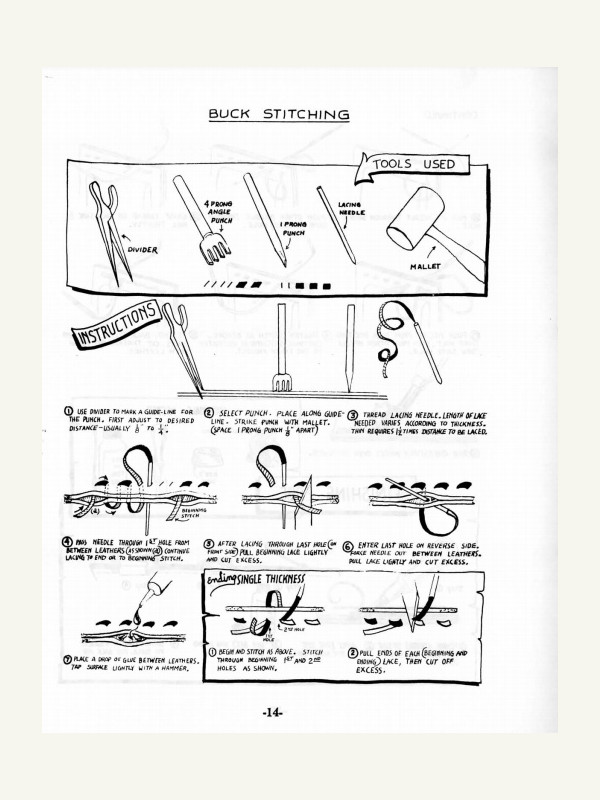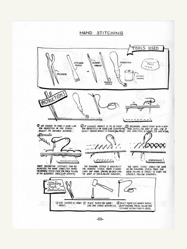 Эта мини-инструкция содержит пошаговые инструкции по 15 методам швов разметке, подготовке и пробивке отверстий, различные техники шнуровки, а также 18 различных стежков и советы по ручной вышивке из кожи.