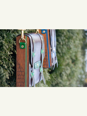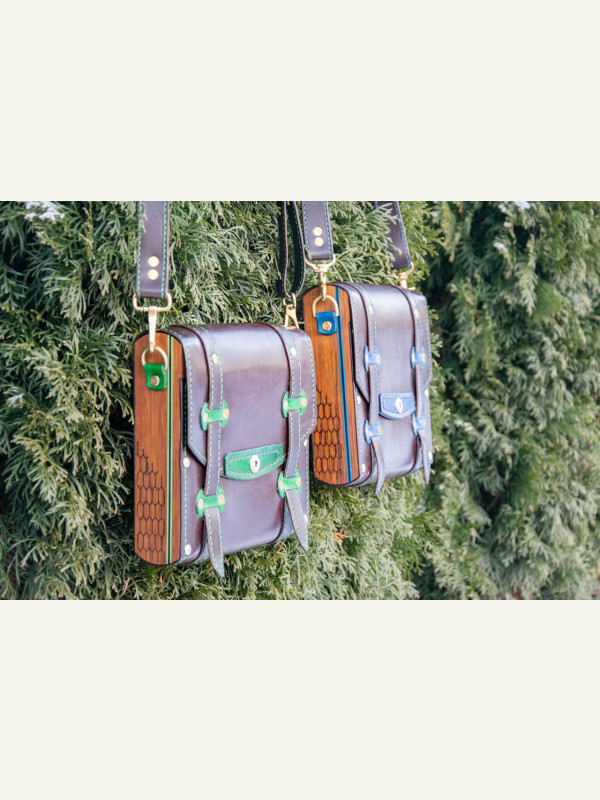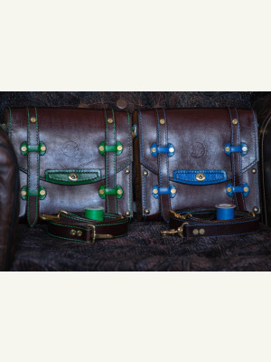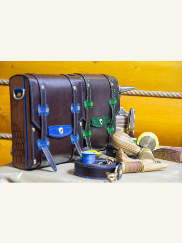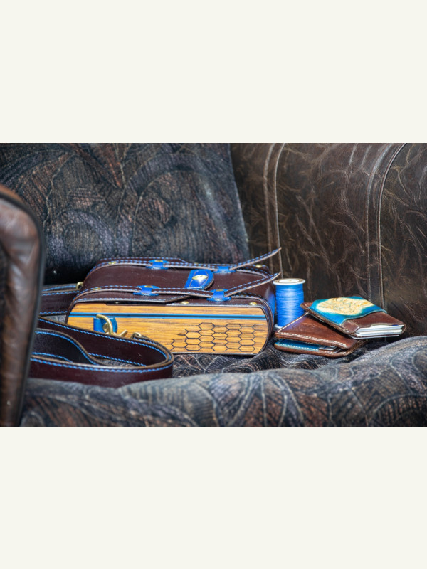 Всем привет! Одна из самых необычных, но интересных работ в нашей мастерской. Работа разносторонняя, но и кропотливая - много ручной работы и прошивки. В ней присутствует как работа с деревом, эпоксидной смолой так и с кожей. Выполнено в 2х экземплярах и в 2х цветовых решениях (синий и зеленый). Для самоделкиных подробные выкройки и чертежи прилагаются в масштабе 1:1. Возможно, позже, будет киношка по изготовлению.