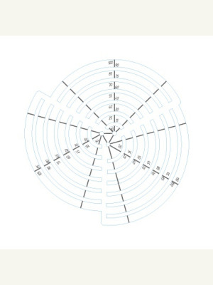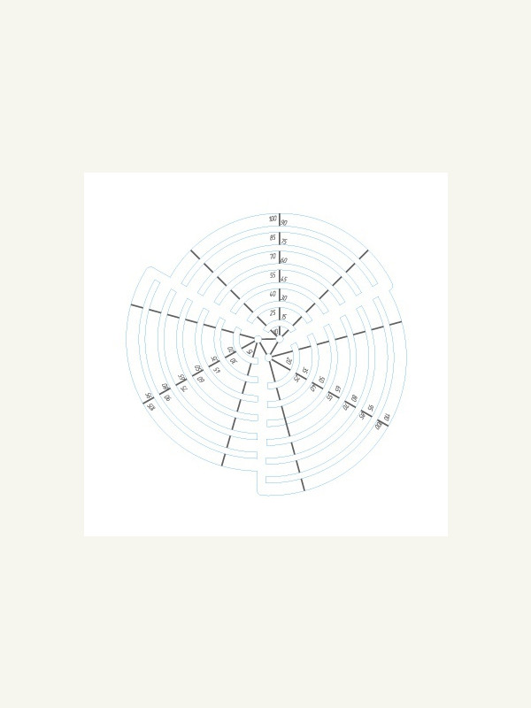 Лекало радиусной линейки. Синие линии - линии реза, серые - гравировка. Файл в формате EPS (открывать в векторных редакторах):