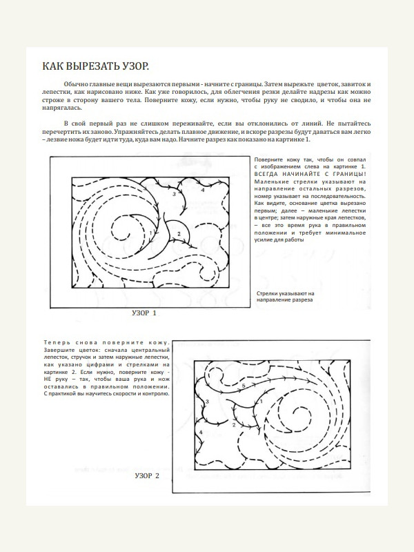 Иллюстрации, подробное описание: резьба по коже, процесс изготовления изделии, что необходимо при работе и многое другое + в конце есть шаблоны выкроек изделий.
