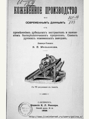 Автор: Н.П Мельников - "Производство кож" 1908 год.