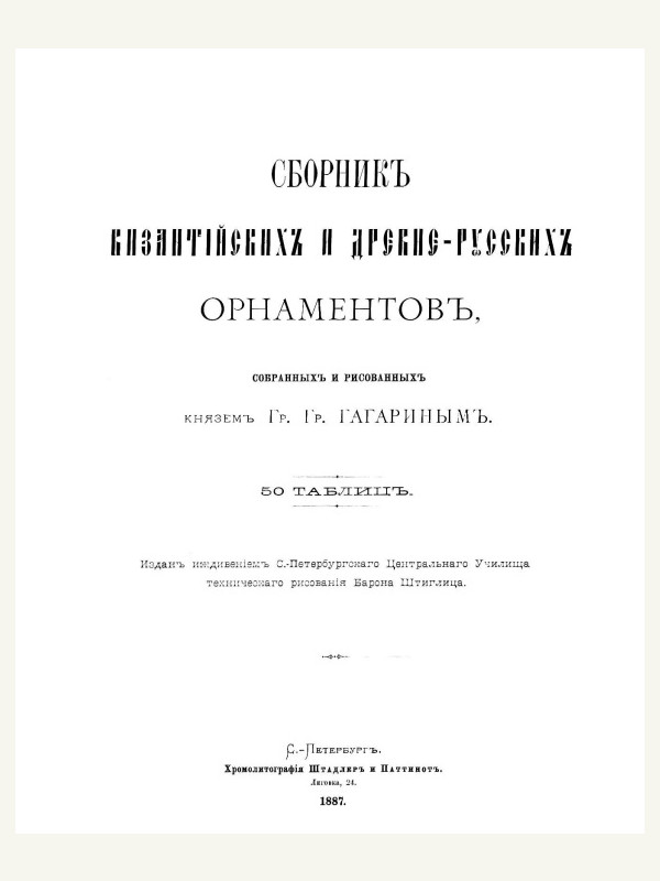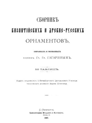 Сегодня у нас довольно необычная и уже давно проверенная временем книга - сборник византийских и древнерусских орнаментов, собранных и рисованных князем Григорием Гагариным, выпущенная в 1887 году.