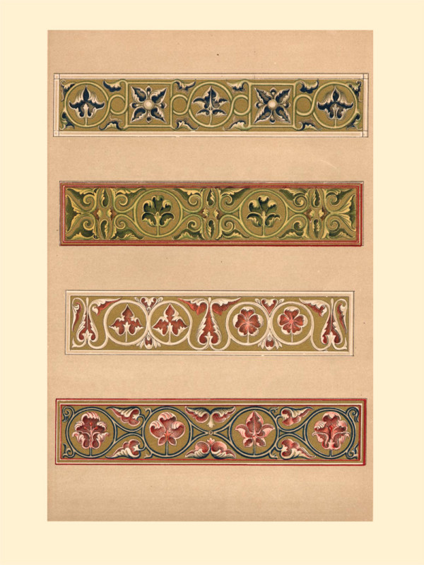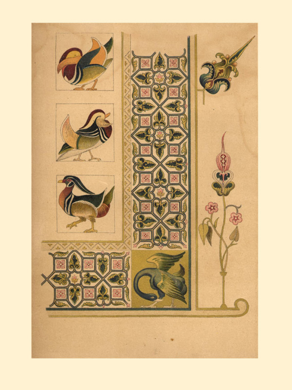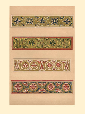 Книга содержит 50 рисунков орнаментов (орнаменты из рукописей в цвете, архитектурные детали преимущественно ч/б)