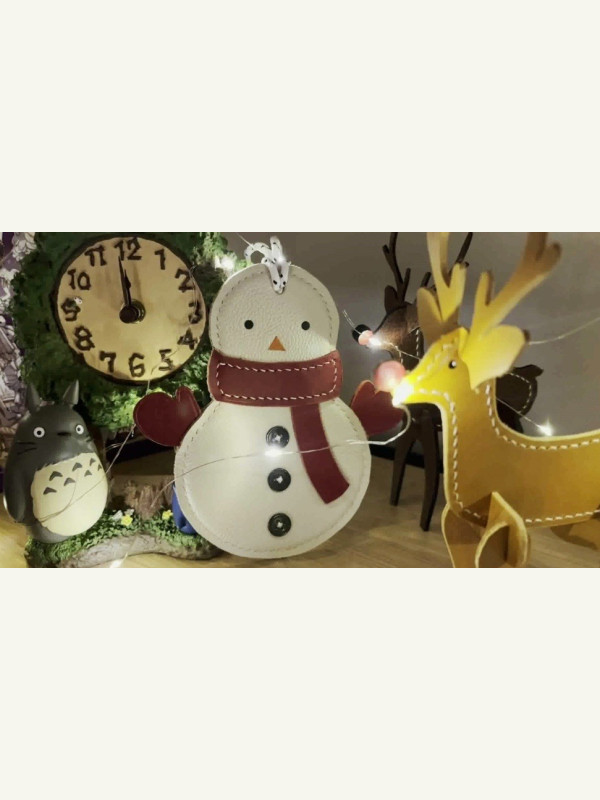 Выкройка игрушка на новогоднюю ёлку “Снеговик” из кожи