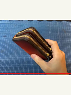 Выкройка кожаный кошелёк с двумя отделами на молнии и кнопке