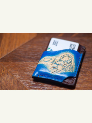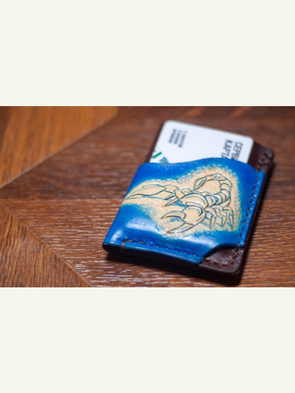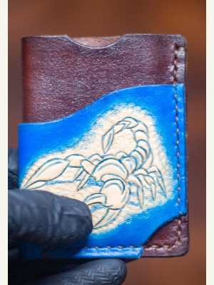 Выкройка простой кардхолдер с выдавленным скорпионом на главной стороне
