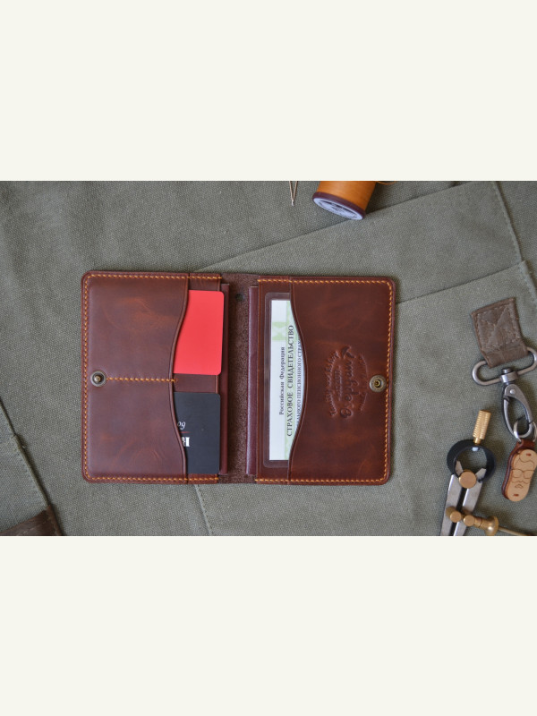 Выкройка кожаная обложка под российский паспорт с отделением под снилс и другие документы