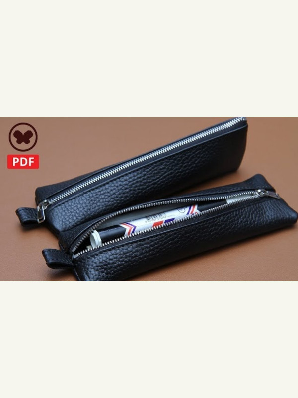 Выкройка небольшой кожаный пенал на молнии под письменные принадлежности