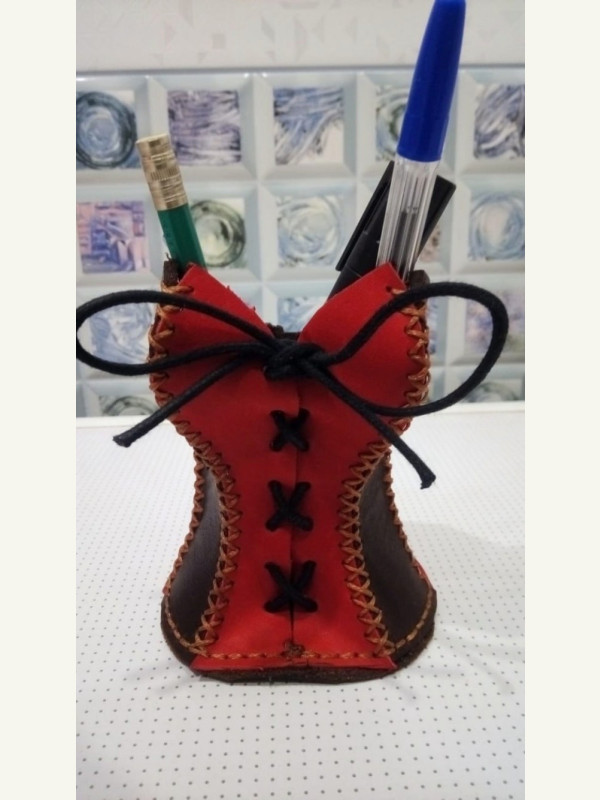 Выкройка кожаная подставка под ручки на стол в виде женского корсета