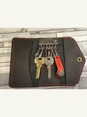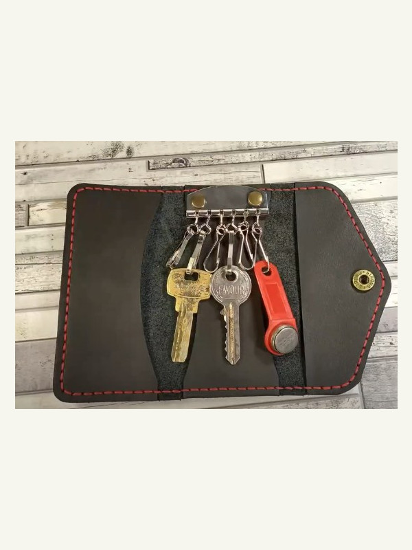 Выкройка простая кожаная ключница на кнопке с видео МК по сборке