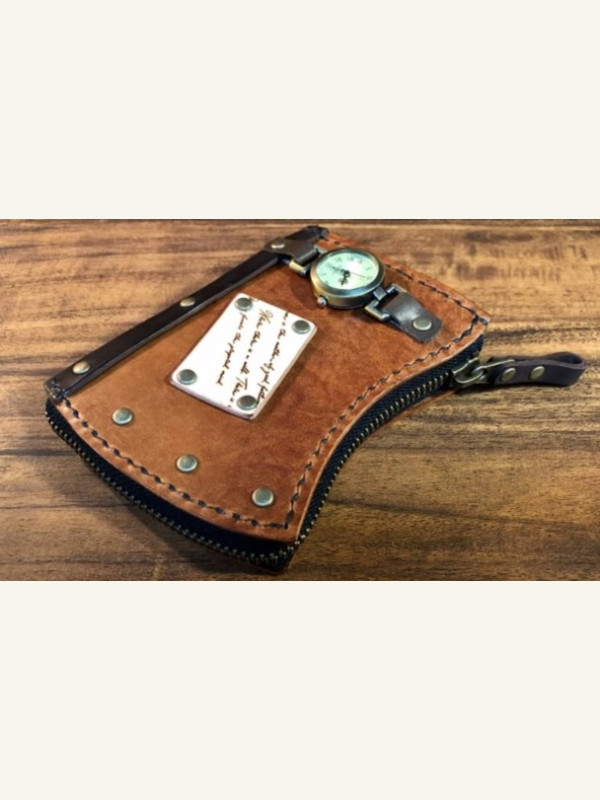 кожаный кошелёк на молнии в стиле steampunk
