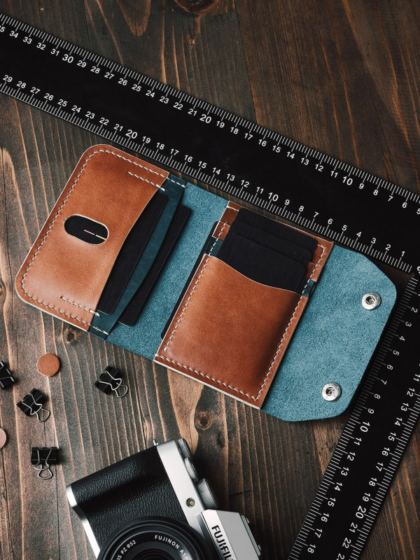 Выкройка очень качественный кожаный раскладной бифолд картхолдер на кнопке
