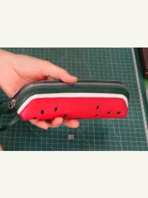 Выкройка пенал из кожи на молнии с рисунком в виде арбуза