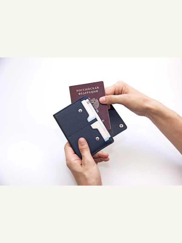 Дорожный паспорт-кошелек с прорезями для кредитных карт, наличных и паспорта.
