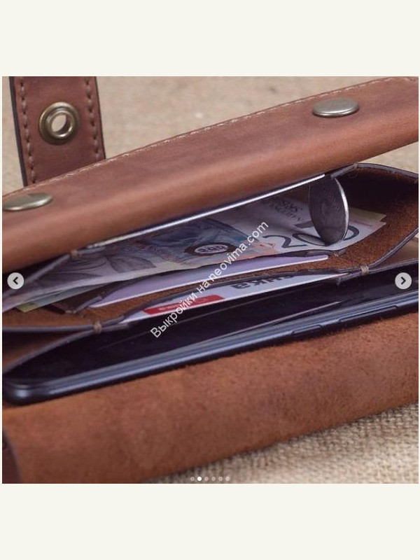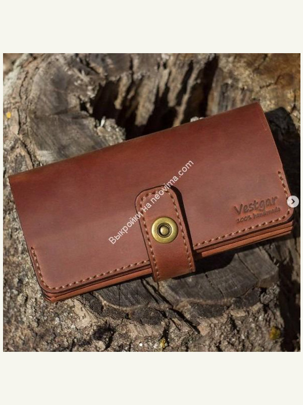 Кошелек выполнен в форме клатча из натуральной кожи. Прошит вручную вощеной нитью. Изделие имеет эргономичный дизайн и спокойно вмещает в себя телефон, документы и деньги. \