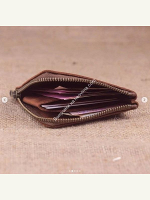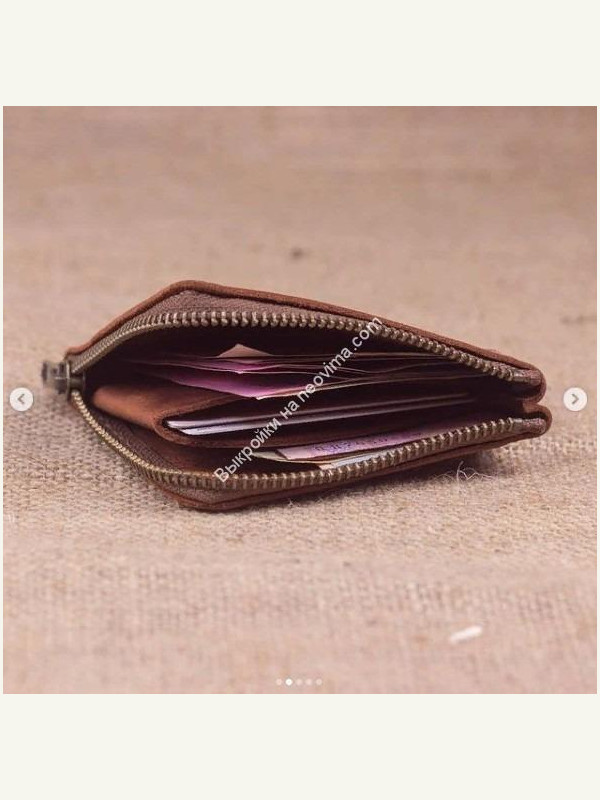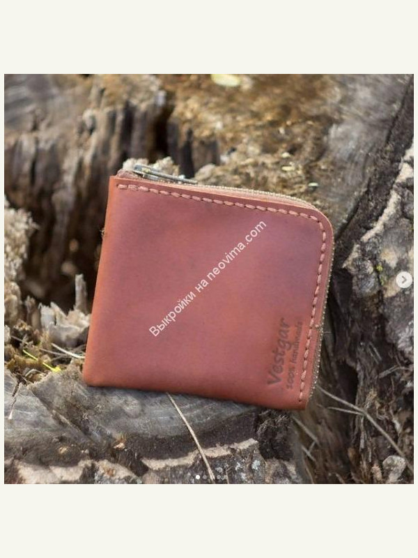 Имеет два отделения для купюр и кармашек для карточек. Используется японская молния YKK. Прошито вручную седельным швом вощеной нитью толщиной 1мм.