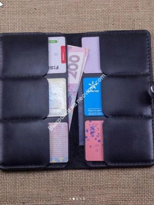 Портмоне состоит из двух отделений для купюр, паспорта, прочих бумажек и шести карманов для карточек. Всё просто и лаконично – без кнопок, застежек, замочков, магнитов и прочей фурнитуры – только кожа и крепкие нитки.