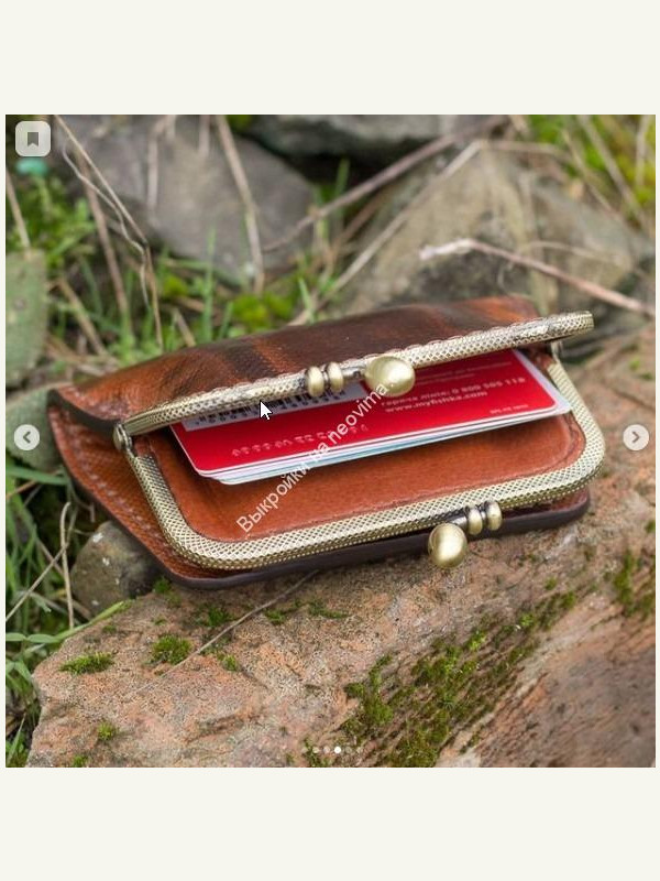 Прошит вручную вощеной нитью. Изделие имеет эргономичный дизайн. Одно отделение под купюры и закрытое отделение на рамке для мелочи или карточек (легко помещаеться до 6 карточек).