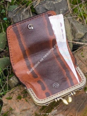Кошелек фиксируется одной кнопкой, которую снаружи не видно.