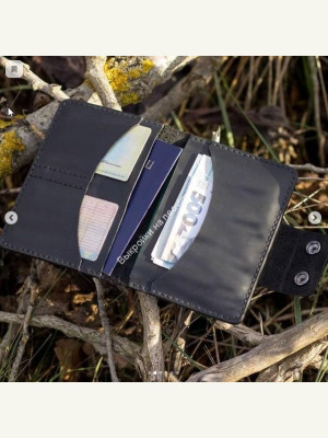 Имеет два отделения для карточек и три под паспорт и прочие документы.