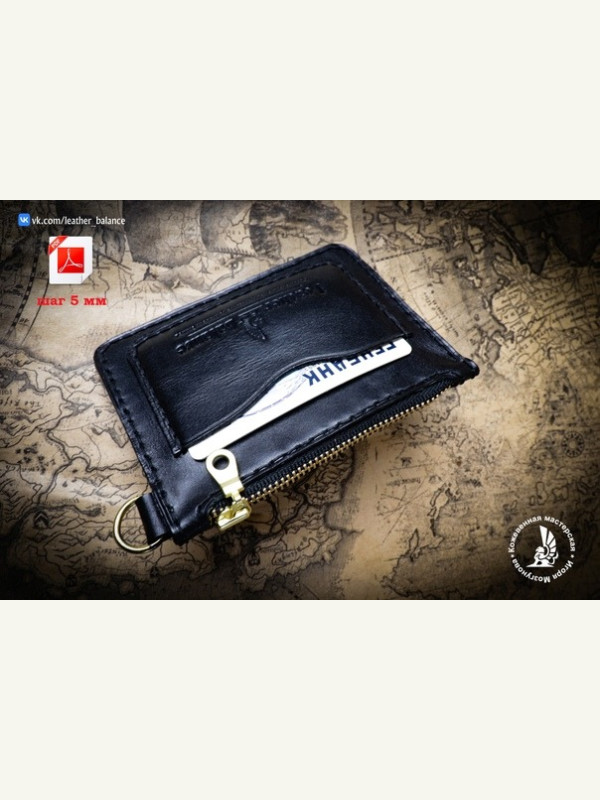 Выкройка небольшой кожаный кошелёк на молнии с отделением под банковскую карту