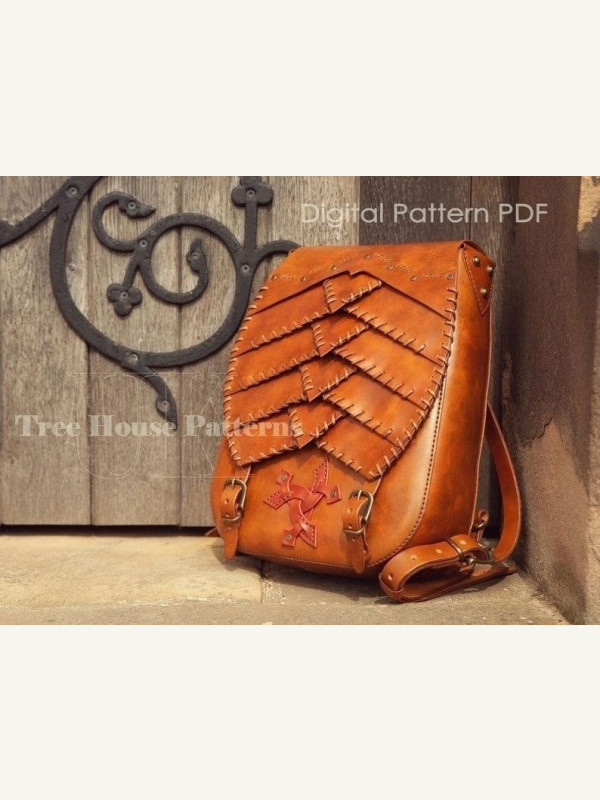 Выкройка кожаного рюкзака с клапаном под документы, книги и журналы