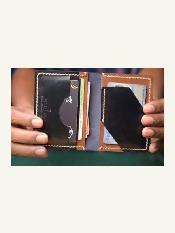 Изготовление кожаного двустворчатого вертикального кошелька