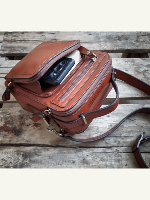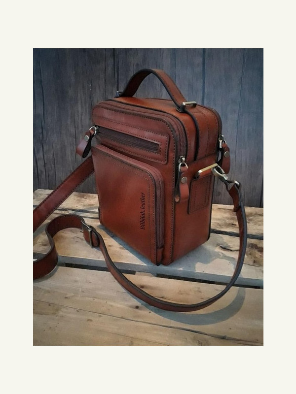 Кожаная мужская сумка под документы кросс боди с 3-мя отделами на молнии