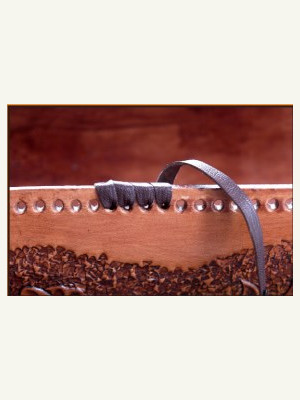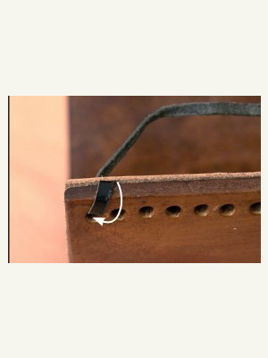 Как оформить края изделия лентой из кожи.