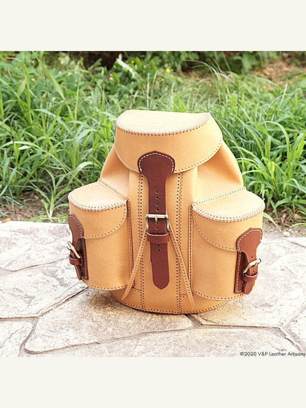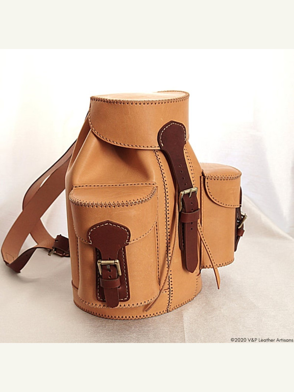 Выкройка необычного небольшого кожаного рюкзака на завязках с клапаном