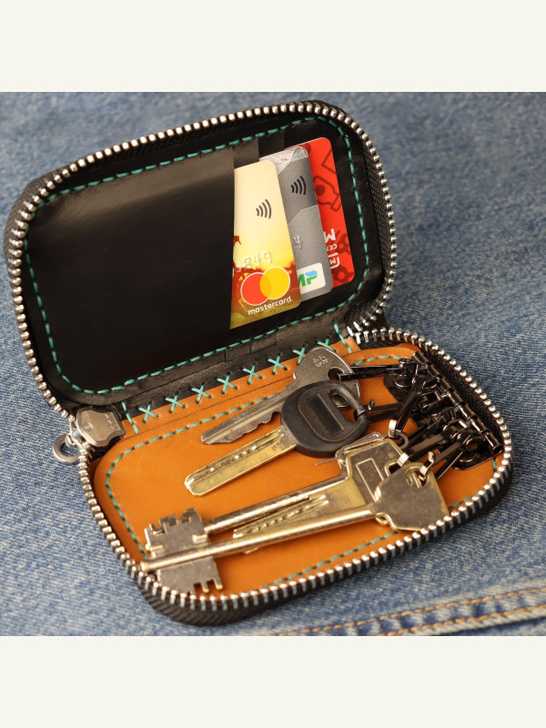 Выкройка кожаная ключница на молнии в виде небольшого кошелька с отделением под карты