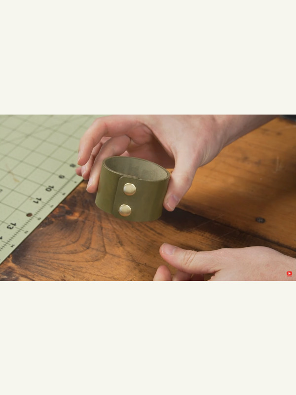 Мы использовали итальянскую кожу Vachetta Valdibrana Concerie Tarano толщиной 8 унций (3 мм). Цвет оливково-зеленый. Этот шаблон может работать с широким диапазоном веса кожи. Тем не менее, вам, возможно, придется проверить правильность размера браслета, если вы меняете толстую и тонкую кожу. Толщина кожи может повлиять на размер.