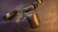 Кожа юфть рыжего цвета, покрасил проникающей краской, и закрыл кремом из карнаубского воска, прошил нитью 0,6мм. Trenkilo.