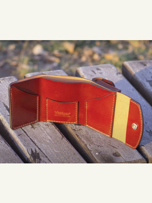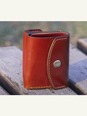 Трифолд из натуральной кожи. Имеет 4 кармана для банковских карт (один из которых скрытый), одно отделение для банкнот и одно отделение для мелочи. Очень эргономичный и практичный.