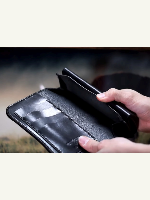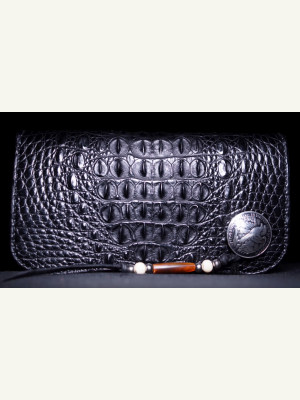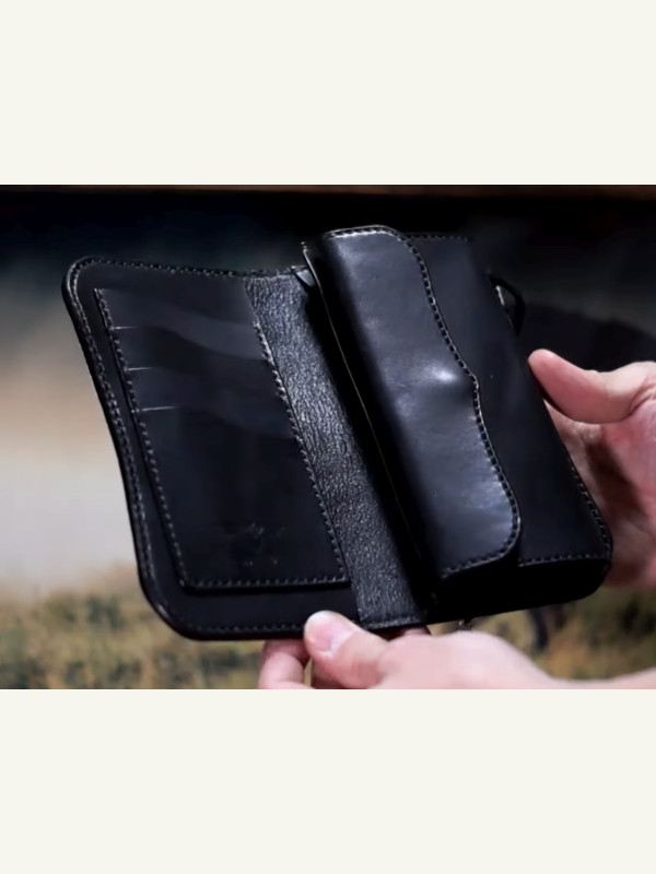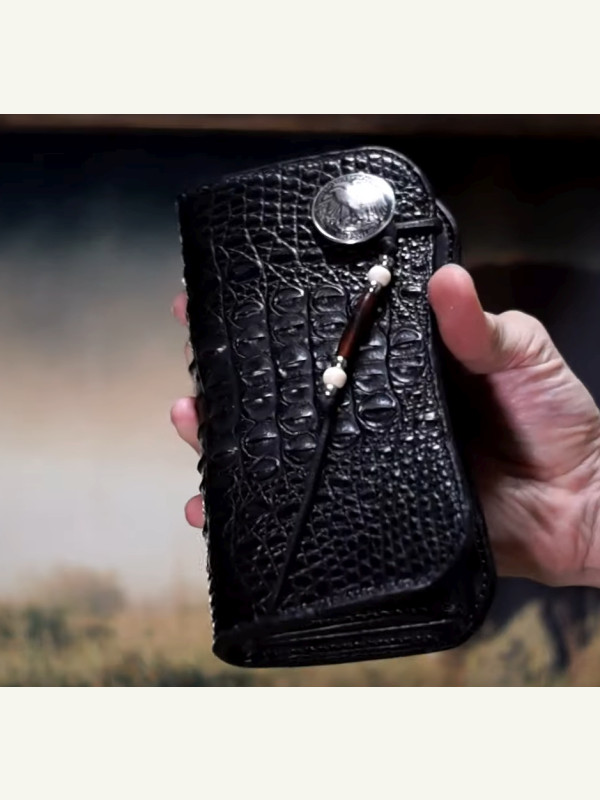 Бесплатная выкройка байкерского полудлинного кошелька из крокодиловой кожи от JAINDIANA Leather Works.