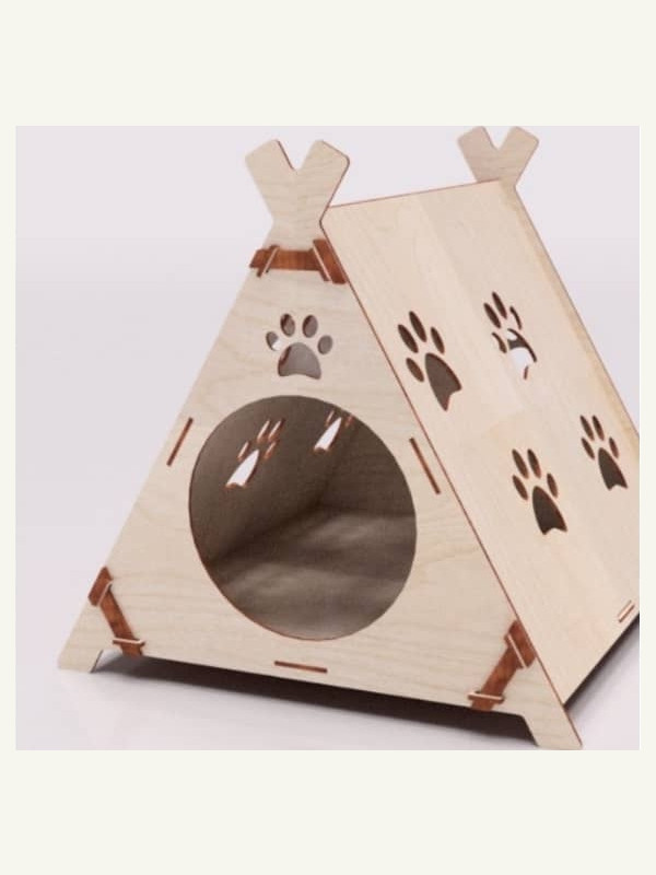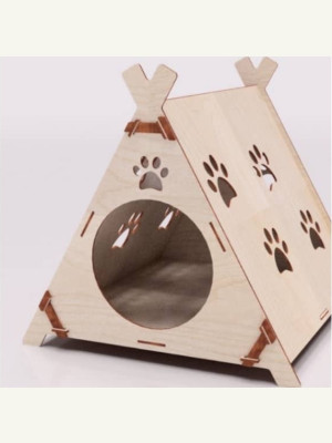 Макет треугольного домика для кошки в векторном формате CDR для лазерной резки из фанеры или другого материала.