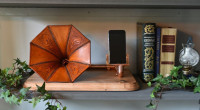 • Выкройка кожаный ретро усилитель звука от грамофона для интерьера