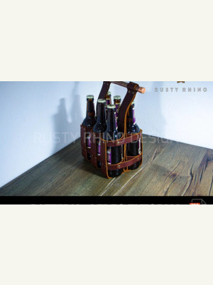 Переноска для пива с деревянной ручкой из кожи.
