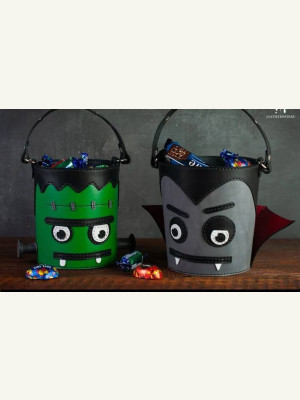 Ведро из кожи для хранения всякого, на иллюстрации — конфеты.