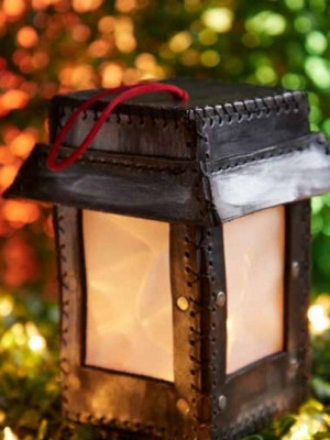 Декоративный фонарик из кожи для украшения к Рождеству или Новому Году.