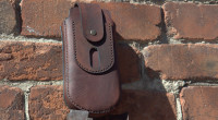 • Краст. Артикул "Коньяк" 2,0- 2,2мм. Объёмный чехол для телефона, либо поясная сумка. Патина- лампадное масло. Было пожелание заказчика сделать крепление именно на ремень шириной 40мм. Поэтому немного изменил конструкцию в верхней части задней стенки. В оригинальных шаблонах эту сумку предполагается крепить на наплечный ремень. P.S. Краст "Коньяк"- оригинал шкуры (полукожа) на последней фотке. ??? Шаблоны данной сумки прикреплены под этим описанием.