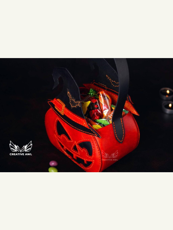 Кожаная сумочка Хэллоуин в которую можно положить большое количество конфет. Как в подарок эту сумку с конфетами самое то для друзей и близких, может даже и на Новый год, ведь он не за горами. Выкройка и МК от Creative AWL.